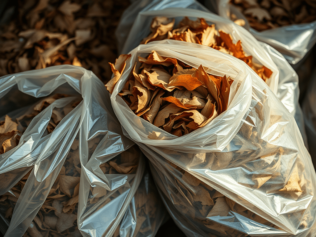 - Appropriate bags. I say appropriate because I like to store them in thick plastic bags, and these are the same kind of bags that the lawn mowing guy gives me all the lawn clippings in. All you really need is something that can take the rigors of dried leaves and twigs going down the sides without tearing badly, because that is going to cause all kinds of problems out in the field.