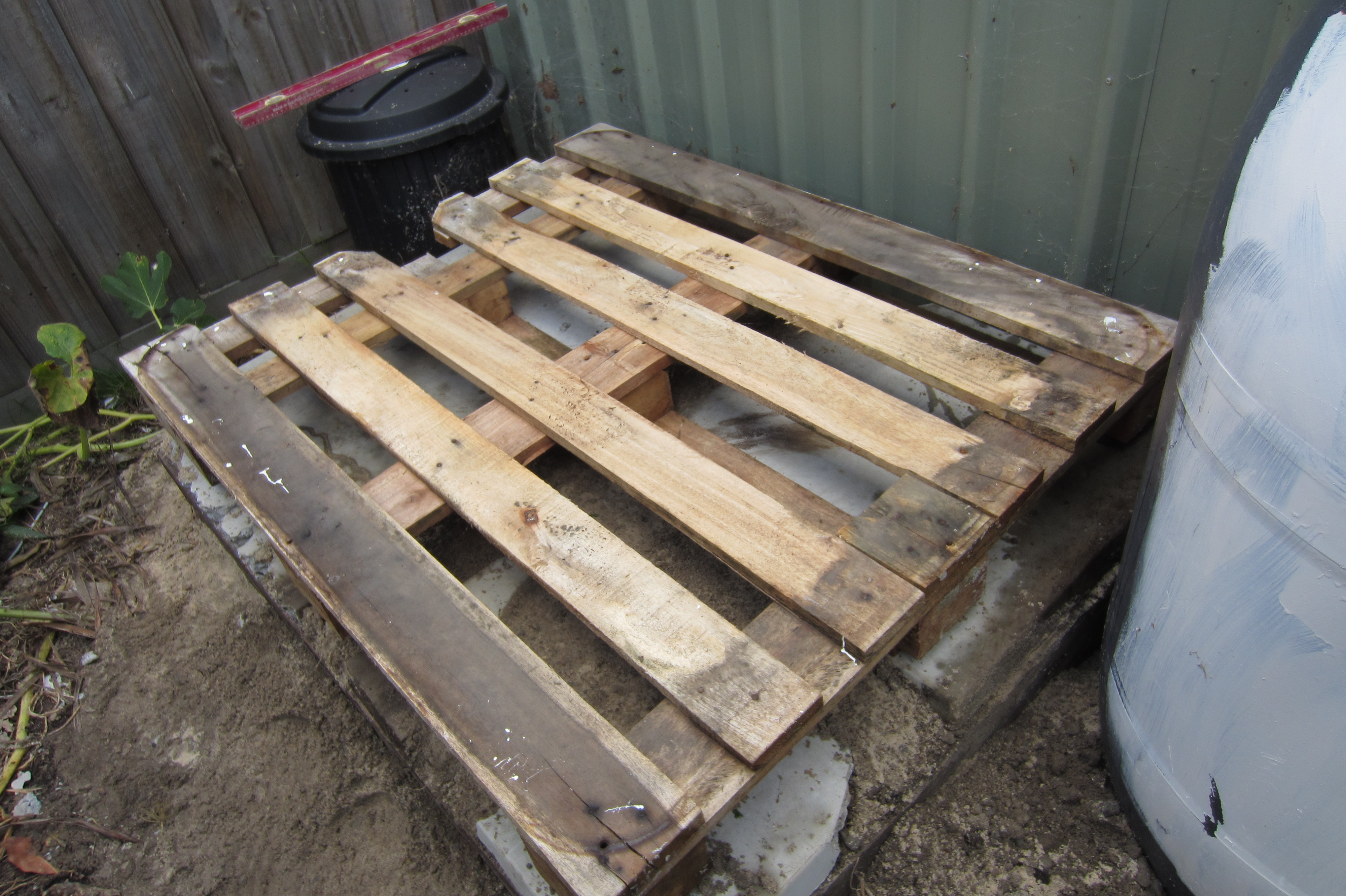 The pallet goes over that and again it is levelled off, with a very slight decline to the side where the IBC water outlet will be.