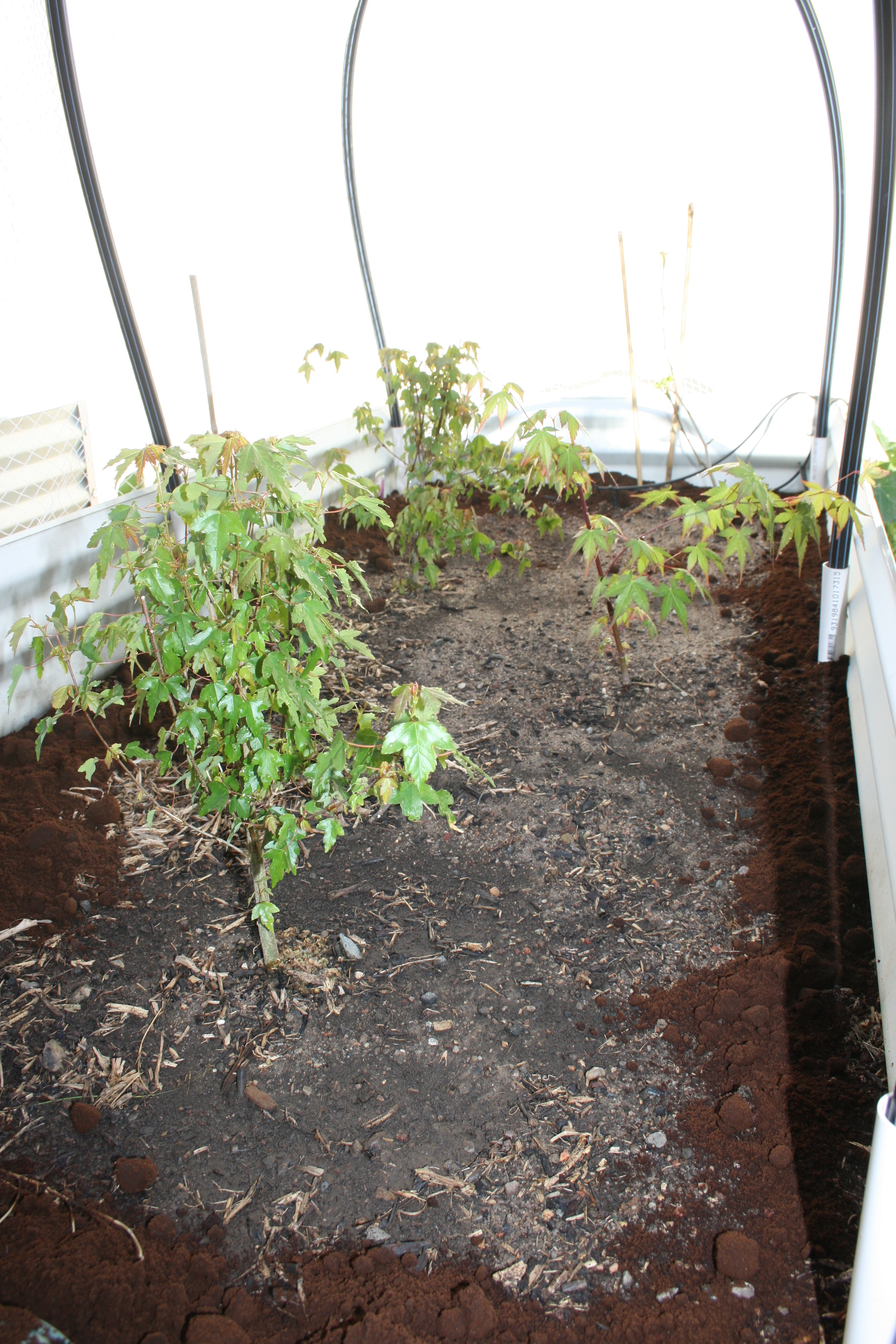 I haven’t been using all my veggie beds, so I decided to throw some young trees in to see what would happen. I’d paid only $6 for them at a bonsai show, so nothing to lose really. And one was a cutting off my ornamental pear that I’d put into some potting mix one year. Actually, I’d put six cuttings in and one survived. I don’t even know if they bonsai well, but it will be fun to try.