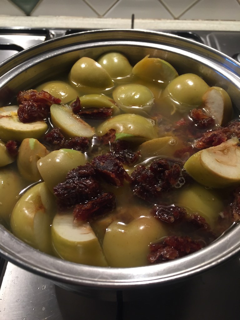 - Throw apples into pot and add small amount of water