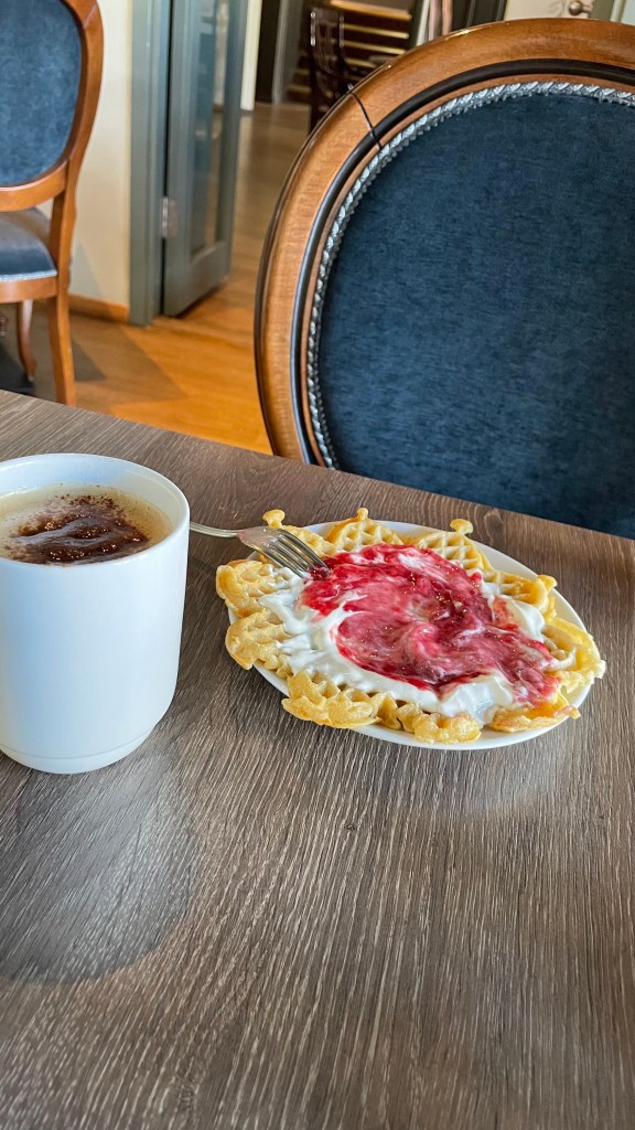 A delightful cultural practice in Scandinavia resembles afternoon tea but with a more complementary bent. Fika was anytime from 2pm to 5pm, usually involving a combination of cookies, cake, waffles, coffee, fruit, sweets and/or water. Sometimes all. I would often find a bowl of apples or chocolates left on the front reception desk of our hotel during the afternoon.
